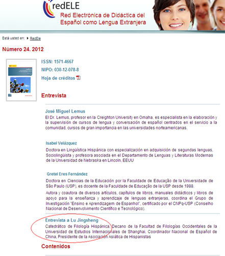 近日西班牙教育文化体育部主办《RedELE》(《对外西班牙语教学网》)杂志(ISSN 1571-4667)通过西班牙驻华大使馆教育参赞处对我校西方语系主任、教育部高校外语专业教学指导委员会西班牙语分委员会主任陆经生教授进行了专题采访,了解中国西班牙语教学研究现状和发展前景。采访稿全文发表在该杂志2012年第24期(1年3期)。(见链接:http://www.educacion.gob.es/redele/revistaRedEle.html )