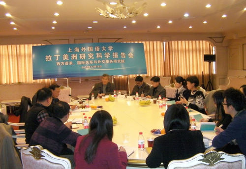 2012年12月18日下午一点半,西方语系和国际关系与外交事务研究院共同举办的拉美研究科研报告会在上外会议中心凯旋厅举行。会议由西方语系主任陆经生教授和国关院副院长韦宗友教授主持,特别邀请上海市社会科学院发展中国家研究中心张家哲研究员和上海国际问题研究院美洲中心张明德研究员参加并做重要发言。西方语系和国关院的部分教师出席了会议。