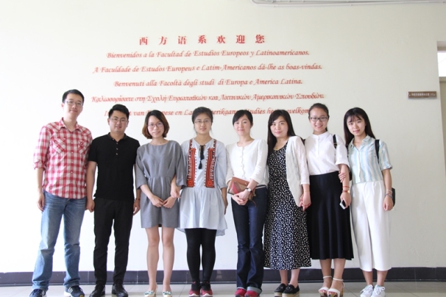 2016年5月6日,浙江外国语学院西方语言文化学院学工办主任陈和健、辅导员杜茜、辅导员江山带领西语学院学生会主席李靖颖、主席助理兼办公室部长王思阳、学习部部长李阳西方语系进行交流学习。党总支副书记张敏、团委书记景飞鹏热情接待了浙外师生一行。双方就新形势下如何做好学生工作、校园文化品牌活动、大学生创新创业、社会实践等方面进行了深入交流。