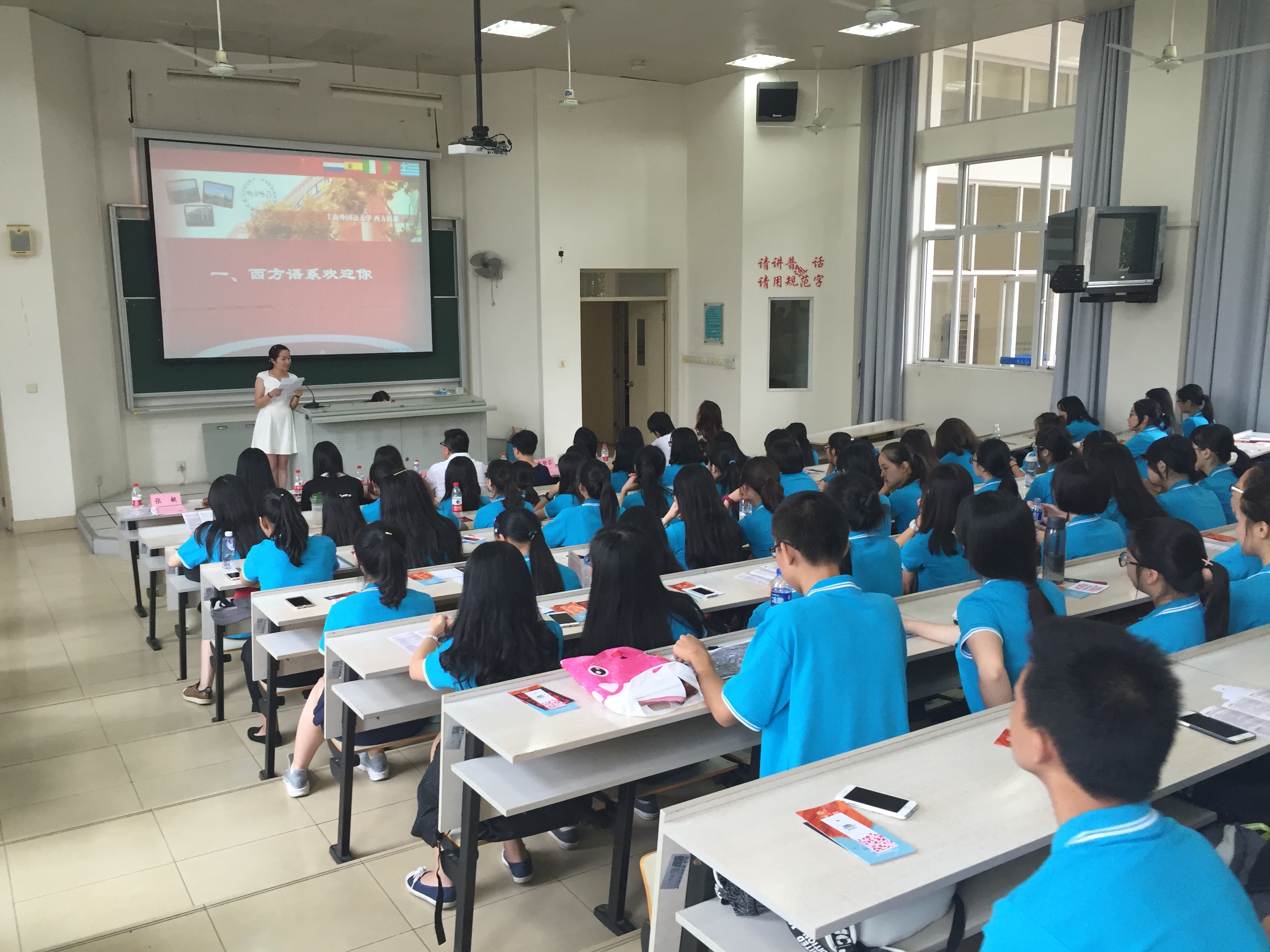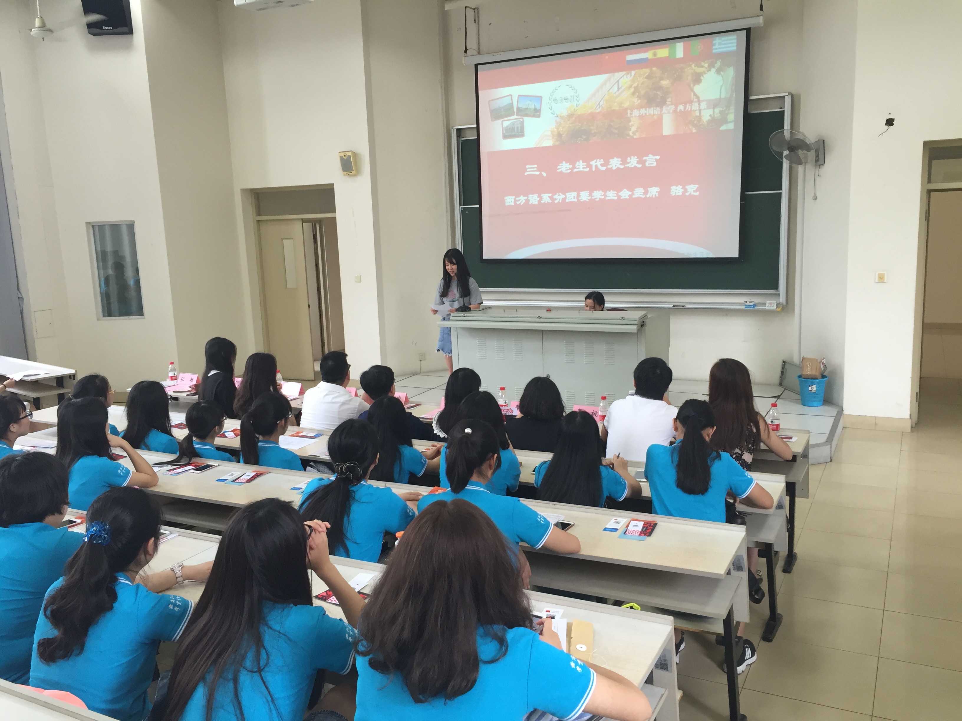 9月6日上午,上海外国语大学西方语系2016级新生开学典礼正式举行。西方语系主任于漫老师;西方语系党总支书记忻炯俊老师;西班牙语李碧芸老师、李桃老师、丁昕云老师、张礼骏老师;意大利语陈丽洁老师;葡萄牙语专业卢佳琦老师;2013、2015级学生辅导员景飞鹏老师出席典礼。开学典礼由西方语系党总支副书记、2016级新生辅导员张敏老师主持。西方语系2016级86名新生参加了本次活动。