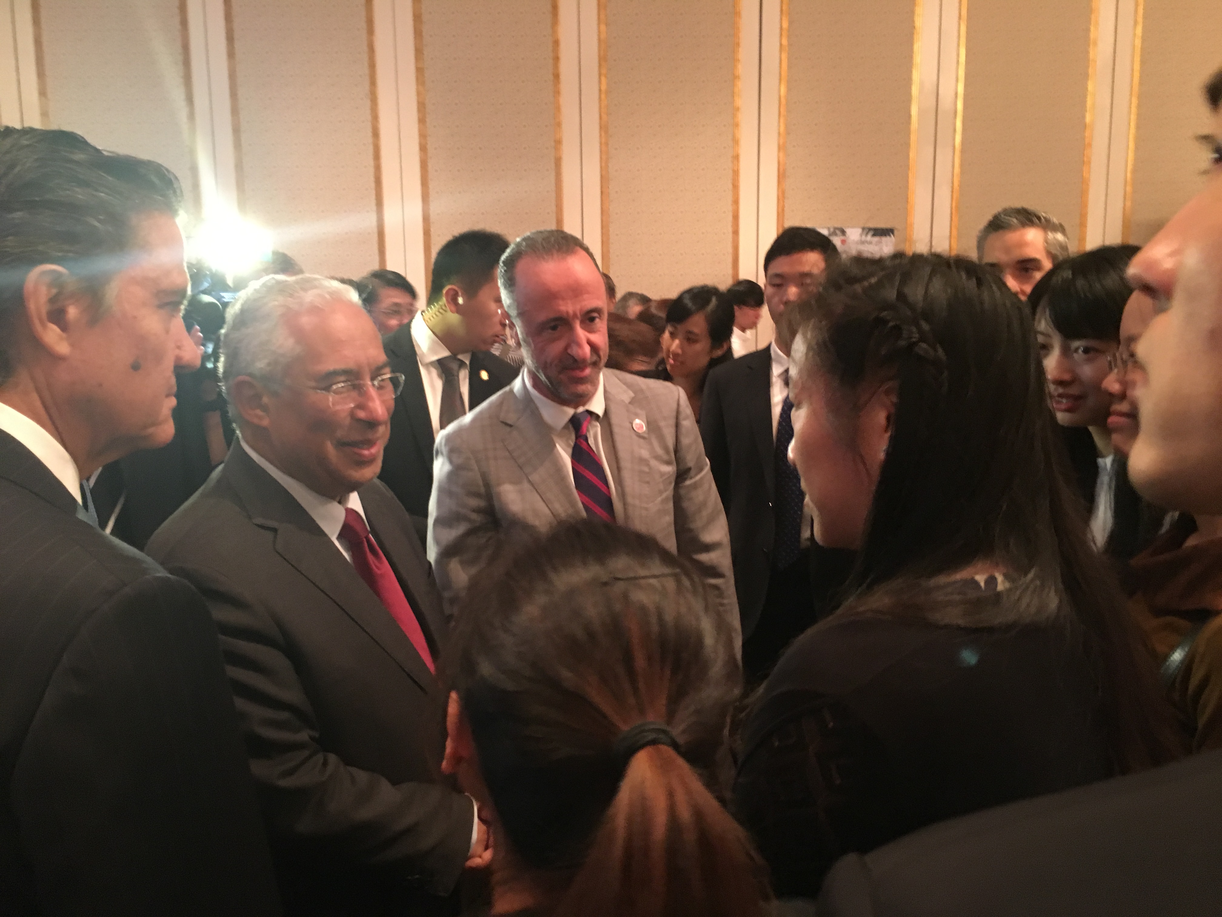 活动期间,科斯塔总理亲切接见了我校葡语专业师生。徐亦行向总理简要介绍了我校葡语专业现状以及我校与葡萄牙大学的合作项目。科斯塔总理对中国政府通过留学基金委资助葡语专业学生前往葡萄牙交流学习表示赞赏,希望学生们能好好利用在葡交流机会,更好地学习语言和文化。最后,总理还与一旁的上外学子一一握手问候并送去祝福。