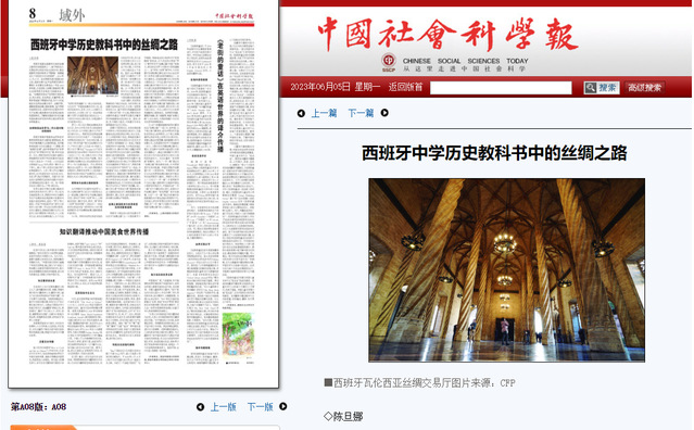 近日,上海外国语大学西方语系西班牙语专业教师陈旦娜在《中国社会科学报》发表题为《西班牙中学历史教科书中的丝绸之路》的文章,呈现西班牙主流历史教材对丝绸之路这一概念的叙事特点。