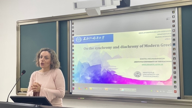 4月8日,希腊塞萨洛尼基亚里士多德大学语言学教授迪米特拉·梅丽莎洛普鲁(Dimitra Melissaropoulou)、海伦·莱昂利迪(Eleni Leontaridi)到访我校西方语系,分别为希腊语专业和西班牙语专业师生作了两场精彩的主题讲座。