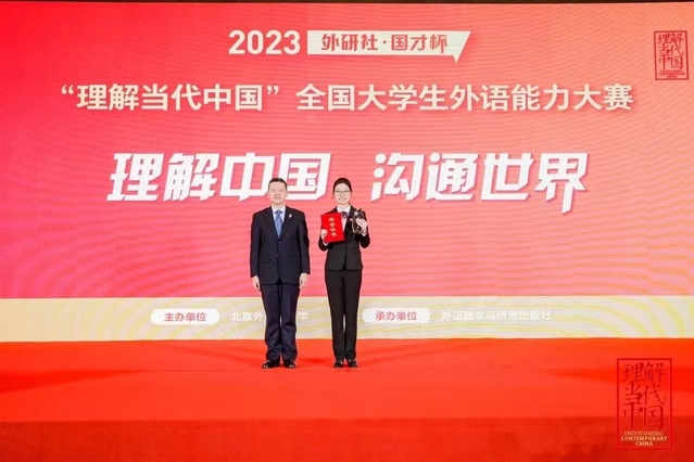 在上外本科的四年,陪伴她从教学楼到食堂路上的,总是耳机里循环播放的西班牙语,随着专业课听写本上一个个红圈圈渐渐消失,潘逸沁也找到了西班牙语学习的方法。本校保研后,潘逸沁在2023年“外研社·国才杯:理解当代中国”全国大学生外语能力大赛中,成为该赛事设置西班牙组后的首位冠军。相比于兴奋或激动,潘逸沁更多的是欣慰,回想起学习西班牙的四年,她常常感慨:“来到上外学习西班牙语是我做出的最好选择,它打开了我的视野,向我展现了不一样的文化,让我能和世界各地的人沟通交流。”