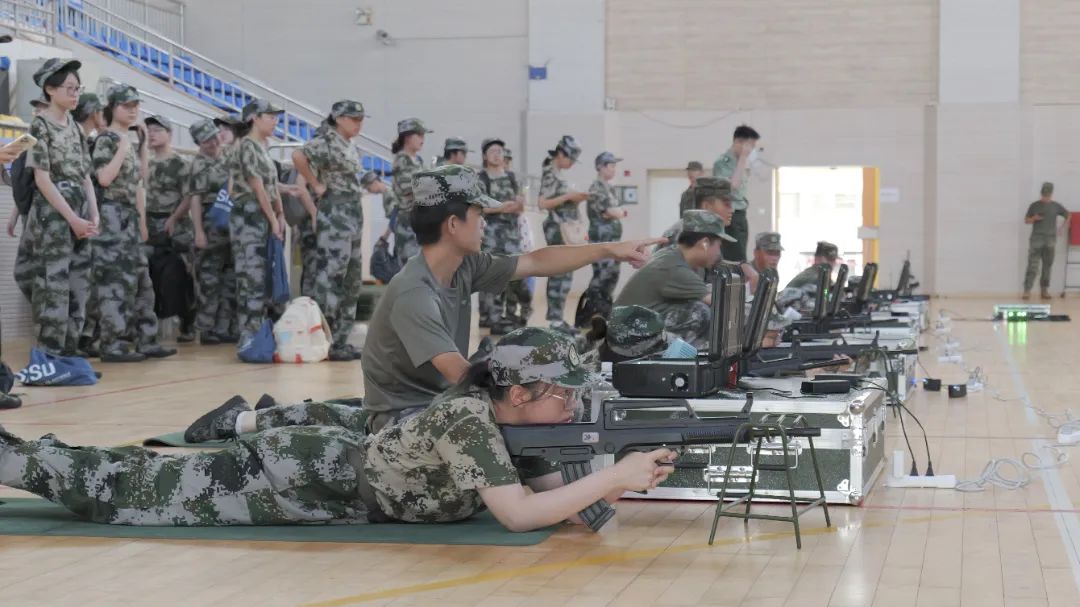 射击训练是同学们最期待的环节。在训练场上,大家认真聆听教官的指导,努力打出完美的一枪,在射击的过程中感受军人职业的荣耀和他们背负的责任。调整姿势、专注地瞄准,开枪,就算脱靶也绝不放弃,每一次射击都是对恒心的试炼。