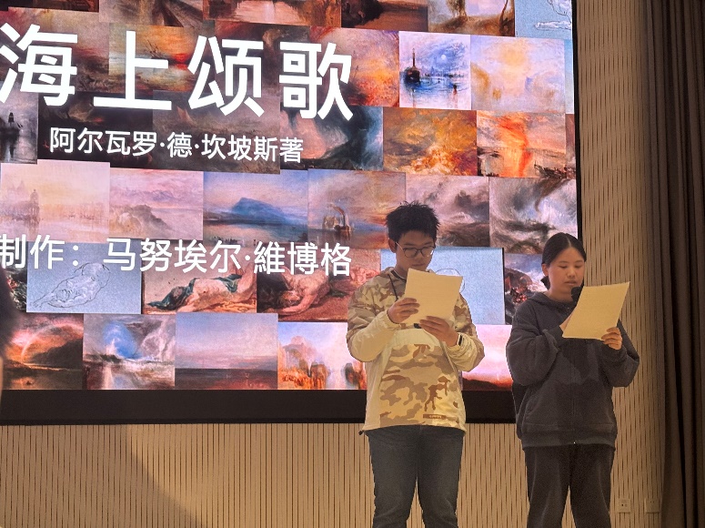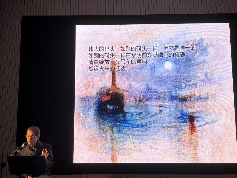 11月5日晚, 葡萄牙知名制片人、演员、歌手、作家曼努埃尔·维博格(Manuel Wiborg)在上外荟空间开展了一场朗诵表演。他为我校师生带来的是史诗《海上颂歌》(Ode Marítima)的舞台演绎与朗诵,这首长诗由葡萄牙著名诗人费尔南多·佩索阿(Fernando Pessoa)以其异名阿尔瓦罗·德·坎波斯创作。